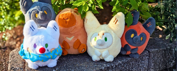 "Cuddle Friends" is our new plush toy series! Larger than the Pocket Friends, these sweeties weight about one pound each, making them perfect for cuddling! New designs, new characters, and more! These plush toys feel like small critters that you have to protect and they are happy to protect you as well!