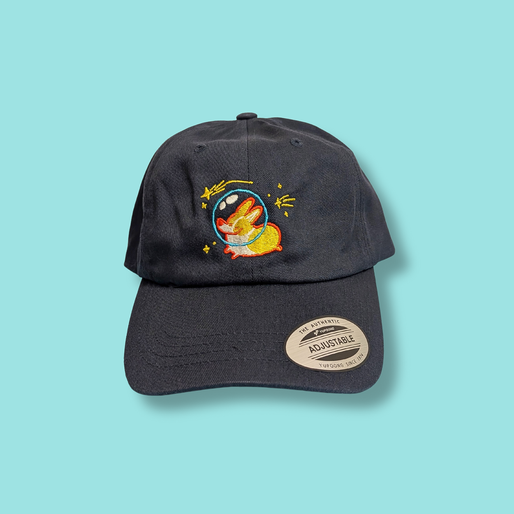 This silly and stylish hat is perfect for any occassion! This dad cap features a playful corgi who is ready for their next adventure in space!
